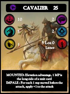 - Move: Play up to two cards, apply your unit's move value to receive that amount of movement points. (Use the card itself as a measuring tool, the short side is worth 2 MP) Movement lets you advance, reload, nock arrows, loot your or your opponent's dead units to get buffs, etc.
